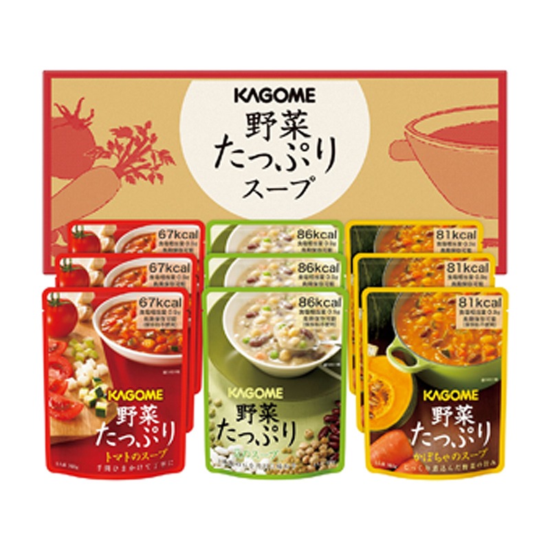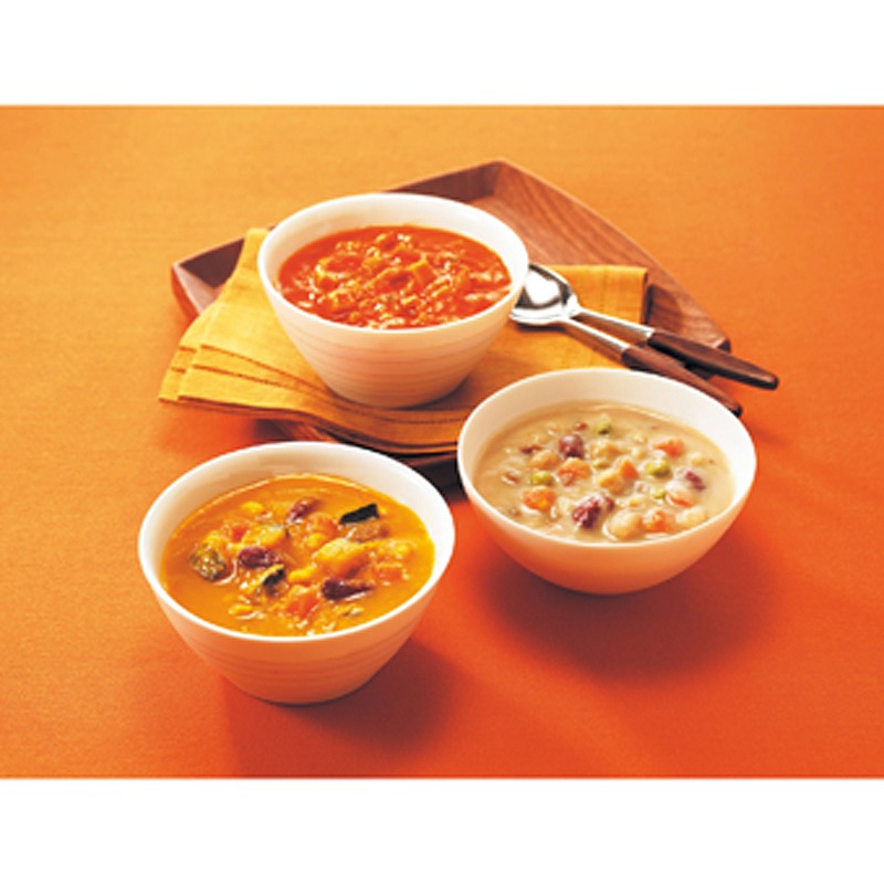 トマトのスープ(160g)×3、かぼちゃのスープ(160g)×3、豆のスープ(160g)×3
