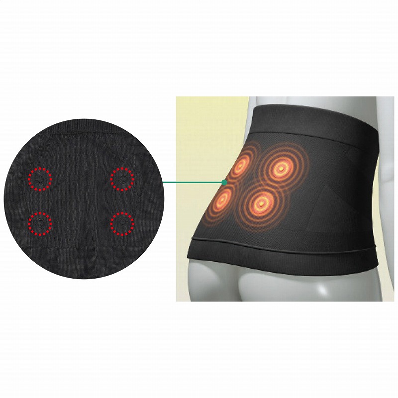 27×27.5×0.2cm・ウエスト適応サイズ:80~100cm・本体部分:ナイロン、ポリウレタン、ポリエステル・使用磁石:ネオジウム磁石4個・医療機器認証番号:304AGBZX00093000 62g