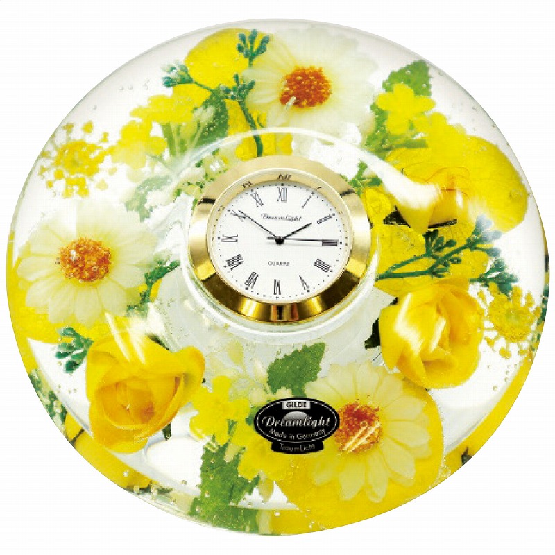 直径15cm厚み4cmフラワー入りガラスホルダー1個・ガラス、シルクフラワー、ジェル・直径4.5cm時計1個・金属、ガラス・6×6.5cm光学ガラス台1個・光学ガラス・ボタン電池1個内蔵 1215g