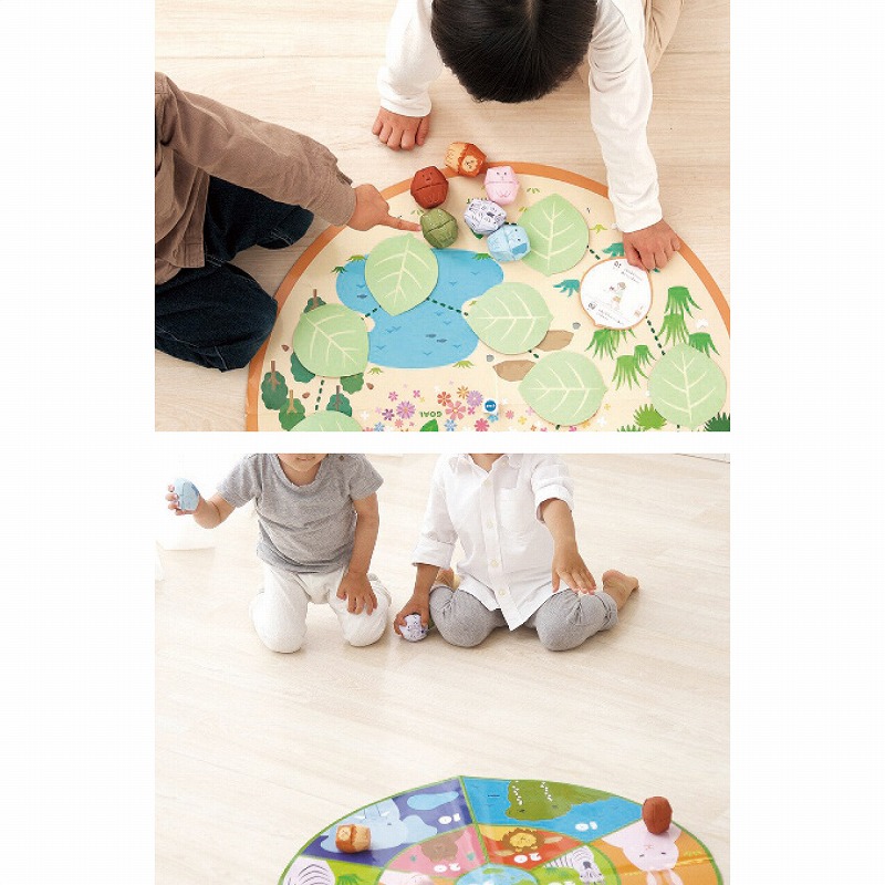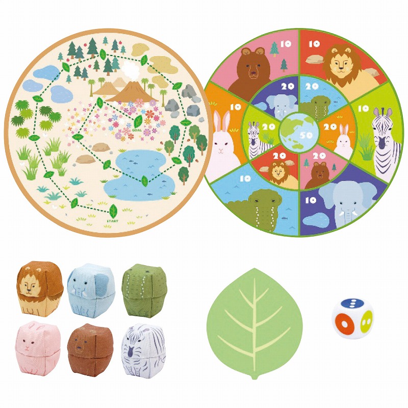 4.5×4.5×5.5cmおてだま6個・綿、ポリエステル、ナイロン、ポリエチレン・2×2×2cmサイコロ1個・ABS樹脂、紙、ポリプロピレン・10.5×12.2cmおてだまカード50枚・紙・70×70cmおてだまシート1枚・紙、ポリプロピレン 520g