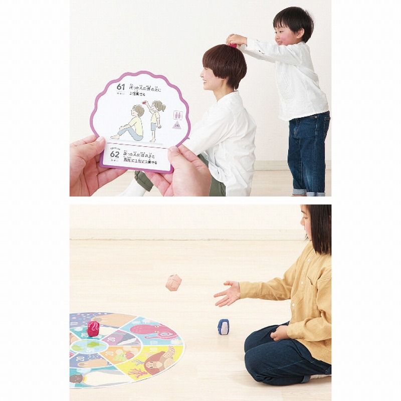4.5×4.5×5.5cmおてだま6個・綿、ポリエステル、ナイロン、ポリエチレン・2×2×2cmサイコロ1個・ABS樹脂、紙、ポリプロピレン・10.5×10.5cmおてだまカード50枚・紙・70×70cmおてだまシート1枚・紙、ポリプロピレン 540g
