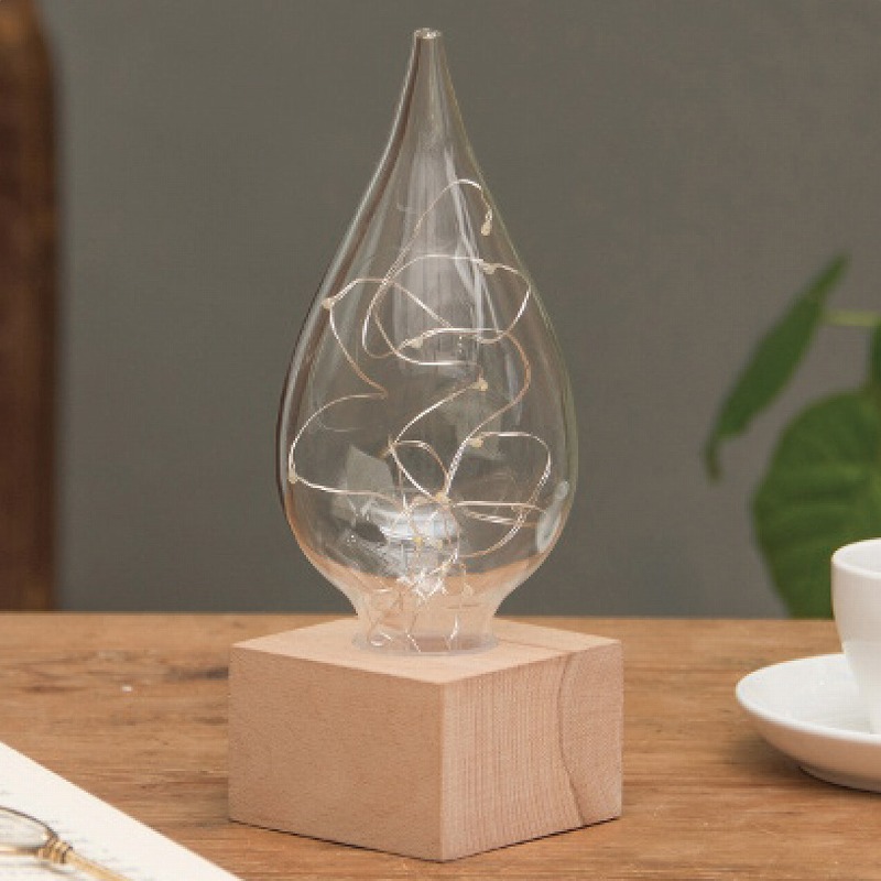 シンプルながら、お部屋のどこに置いても不思議な存在感を放つしずく型のLEDライト。ガラスとライト、そして木という異素材の組合せが新鮮な上、過度な色やデザインを省いたデザインなので飽きることはありません。柔らかな光でリラックス、いつでもそばに置けるコードレス仕様なのも嬉しいポイントです。