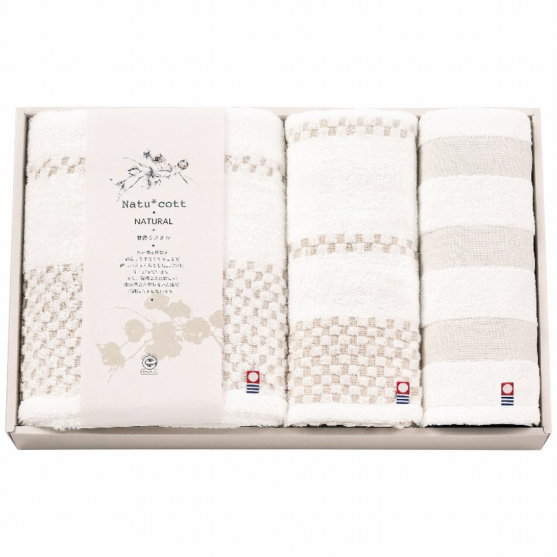 60×120cmバスタオル1枚・34×80cmフェイスタオル1枚・34×36cmウォッシュタオル1枚・綿100% 690g