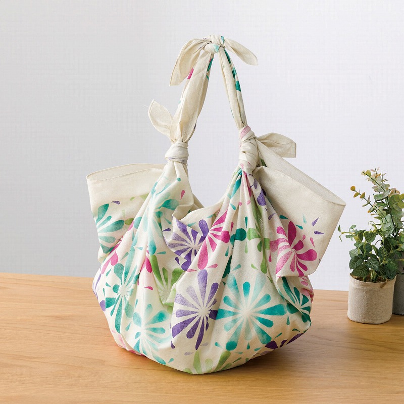 軽くて柔らかい綿ふろしきに撥水加工を施したふろしき。ものを包むだけでなく、結んでエコバッグにしたり、ストールやショールのように使ったり、インテリアに使ったり、様ーな用途で暮らしを彩ります。アウトドアのお供や防災用途にも。