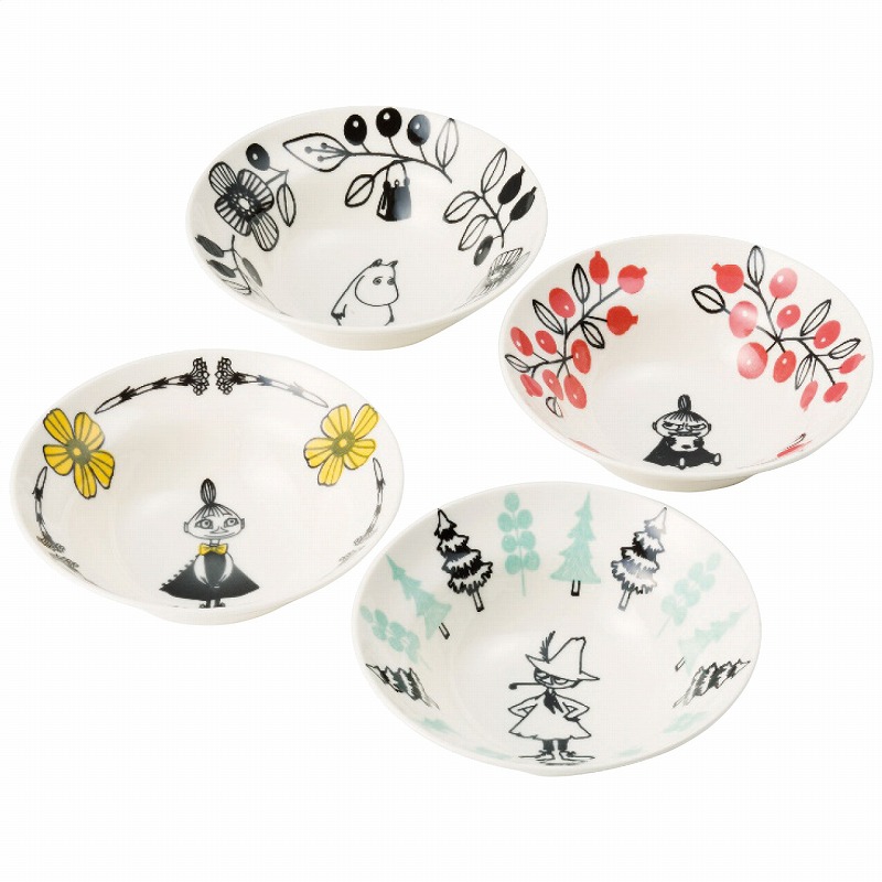 直径16cm高さ5cmボウル4客(4柄)・磁器 850g