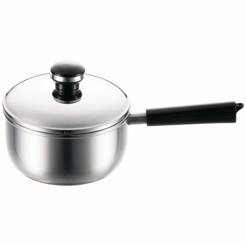 直径18cmソースパン1個・全面鉄芯3層鋼(ステンレス・鉄・ステンレス)・ハンドル、ツマミ:フェノール樹脂・板厚:1mm 1200g