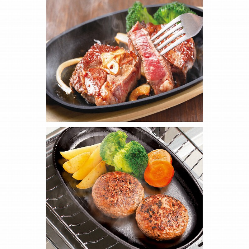 23.5×13.5×2.2cm鉄板2枚・鉄鋳物・28×14.5×1.3cm敷板2枚・天然木・ハンドル1個付 2170g