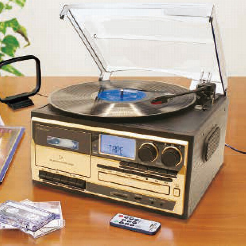 33×20.5×29.5cm・フロントパネル:ABS樹脂、PVC・キャビネット:MDF樹脂・消費電力:16W・コード長:約1.5m・ACアダプター、リモートコントローラー、AMラジオ用ループアンテナ、45回転レコード用アダプター、交換用レコード針付 4200g