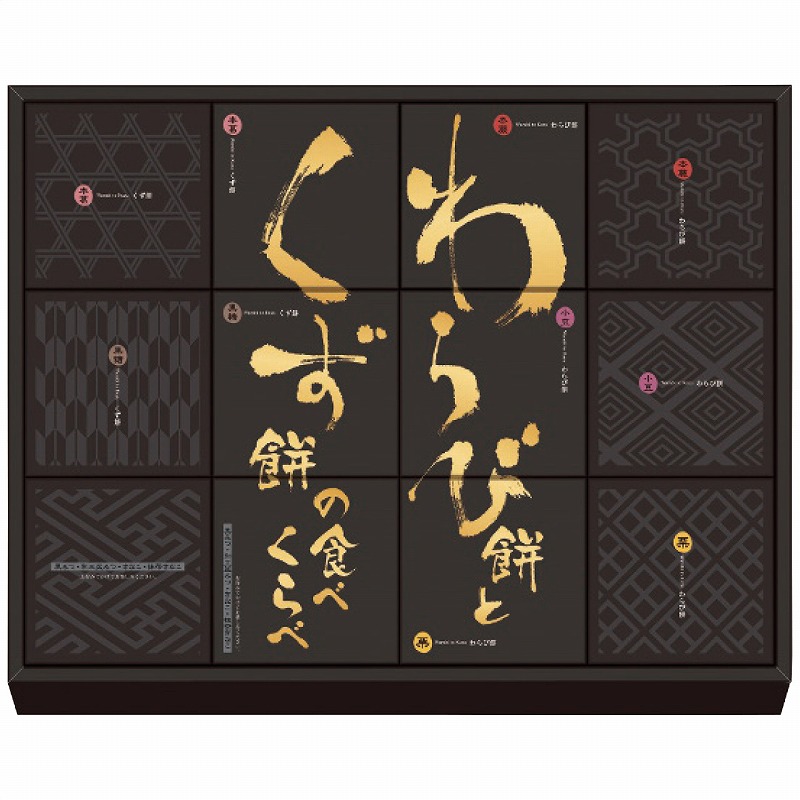 わらび餅(本蕨・小豆・栗各2個)・くず餅(本葛・黒糖各2個)・きな粉・黒みつ各6個・抹茶きな粉・和三盆みつ各4個 1240g