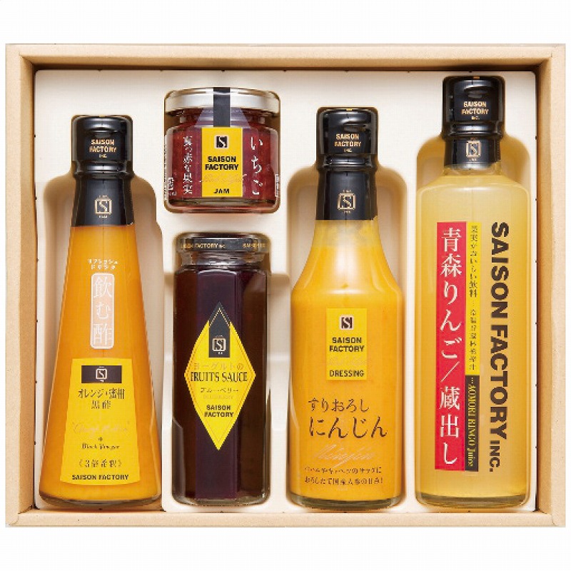 飲む酢オレンジ+蜜柑黒酢160ml・リッチスタイルジャムいちご70g・フルーツソースブルーベリー140g・リッチスタイルドレッシングにんじん180ml・りんごジュース270g各1瓶 2100g