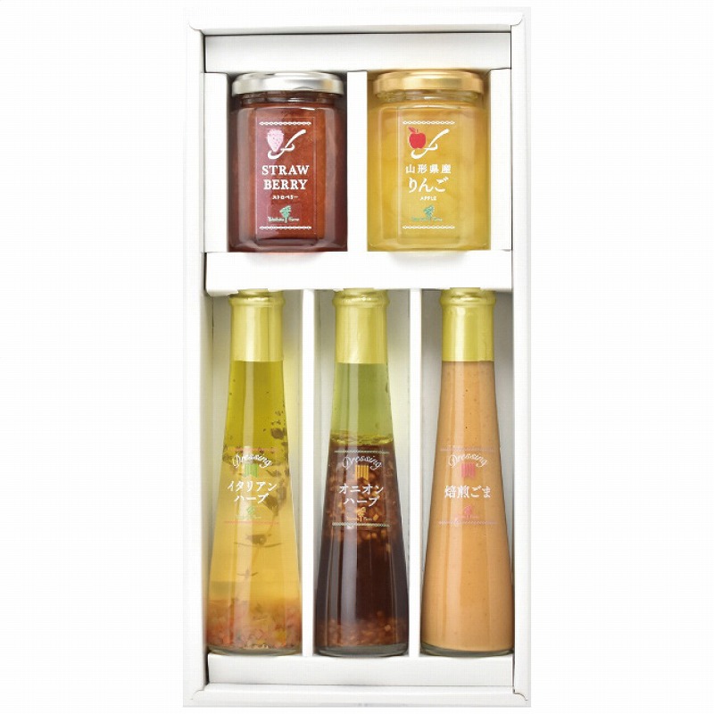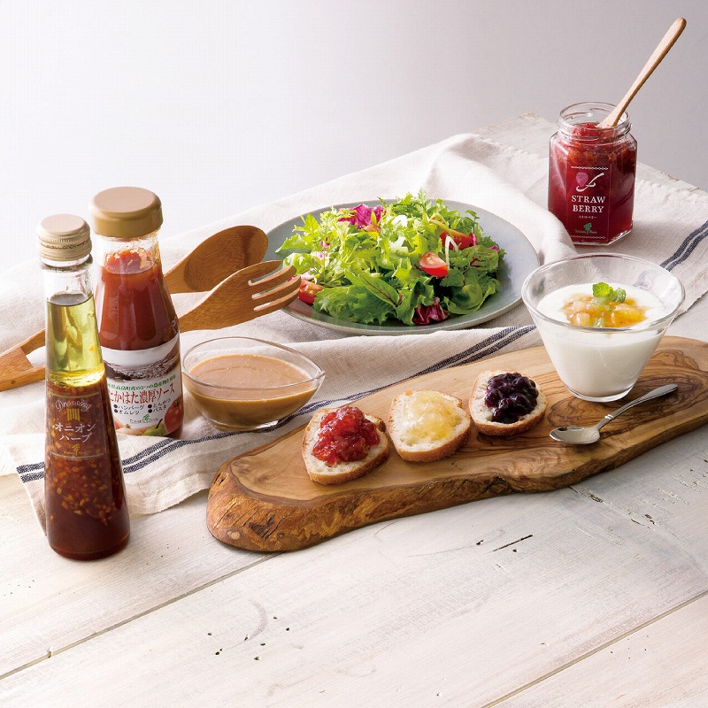 ジャム145g(ストロベリー・りんご各1個)・ドレッシング122ml(イタリアンハーブ・オニオンハーブ・焙煎ごま各1本) 1700g
