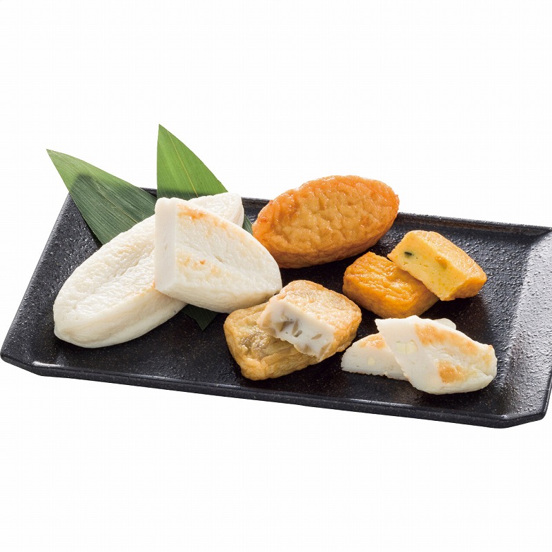 素材にこだわり、保存料・でんぷん・卵白を使用せず、厳選した魚のすり身と自然の素材(吉次魚醤などの天然調味料)だけで焼き上げた、鐘崎の看板商品「大漁旗」を中心に、かまぼこと相性の良いチーズを練り込んだ「味ささ」、味噌の風味がふわっと香る「伊達揚げ」、滑らかな食感が特徴の揚げかまぼこ「旨揚げ」を詰合せました。