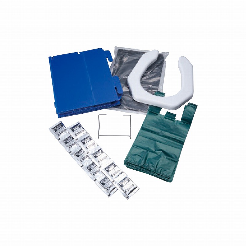 組立時:36.5×34.5×33.4cm・便座:ポリプロピレン・トイレ:プラスチック段ボール・ペーパーホルダー各1個・ステンレス・凝固剤10個・高分子吸水樹脂・65×80cm汚物袋・35×17cm抗菌消臭処理袋各10枚・ポリエチレン