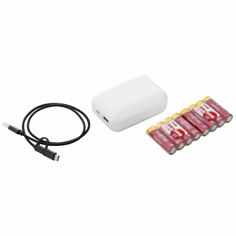 6.8×10×3.9cm・ABS樹脂・2in1充電ケーブル(マイクロUSB/Type-C)1本・10年保存アルカリ単3電池8本付 340g