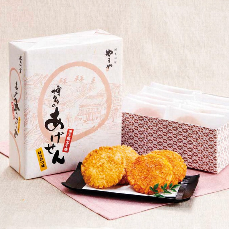 上品な甘さと醤油が香ばしい「はちみつ味」と、ピリッと辛い辛子明太子の風味がおいしい「辛子明太子味」。2つの味を楽しめる贅沢な組み合わせです。