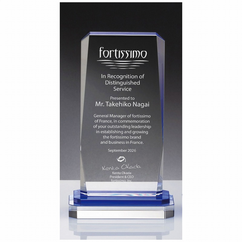 クリスタル製の盾をまとめたカテゴリ。各種記念品や表彰などの記念品向けにレーザー刻印やサンドブラスト加工に対応しています。