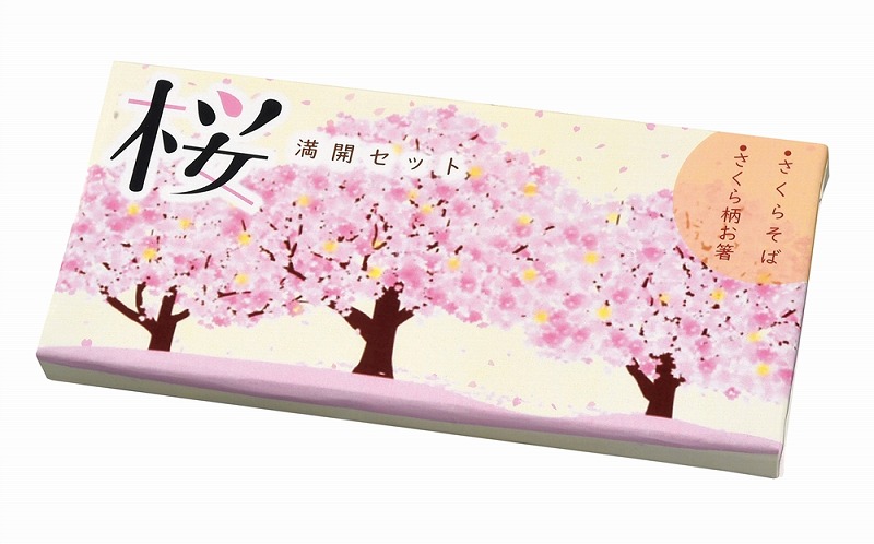 桜そばにさくら柄のお箸2膳をセットした春の訪れをご自宅で満喫できるセットです。