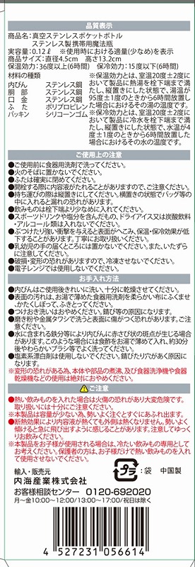 ポケットに入るちょい飲みサイズ。120mlのコンパクト型保冷温ボトル。