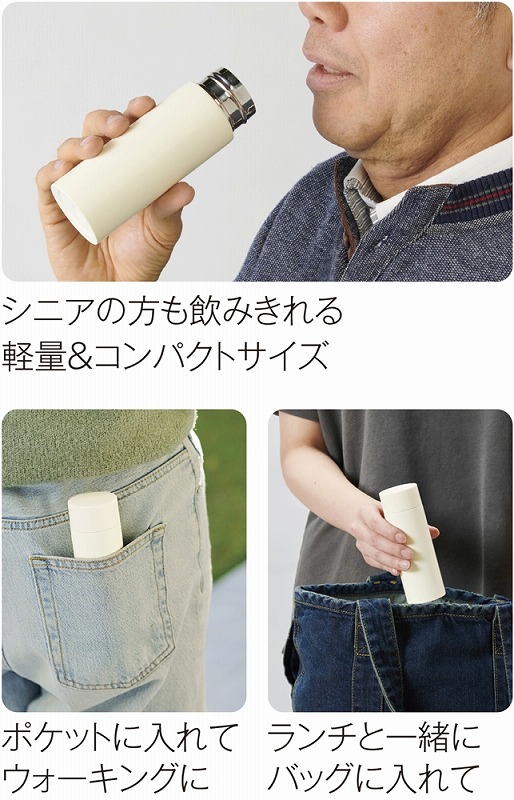 女性やシニア向きの飲み切りサイズで、シンプル&コンパクトな真空ボトル。