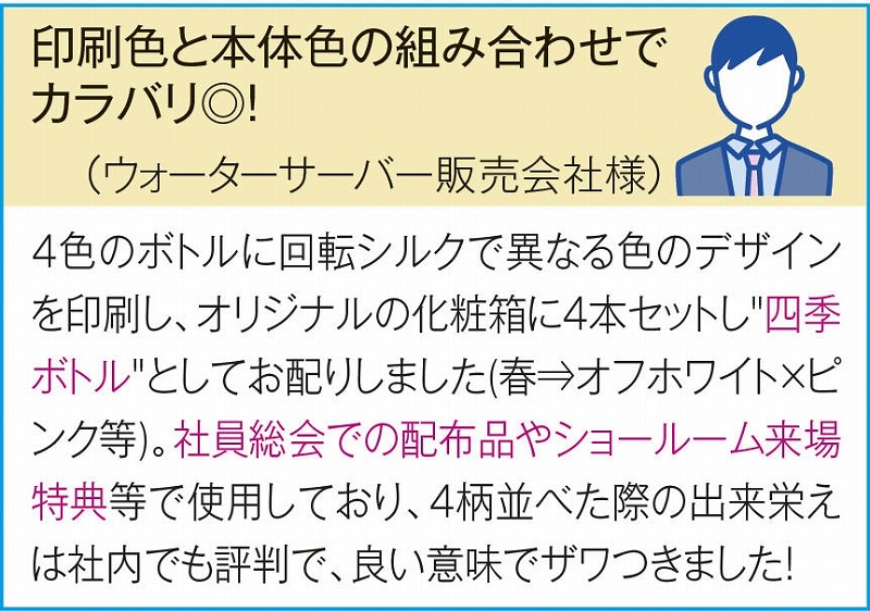 絶妙なニュアンスカラーがおしゃれで、ポケットサイズで携帯ラクラク!バッグのサイドポケットにも入れられる手軽さが魅力です。お散歩時の水分チャージや外出時のお薬を飲むときに重宝します。ペットボトルごみを削減してSDGsに貢献!名入れすれば、企業やお店のアピールにつながります。