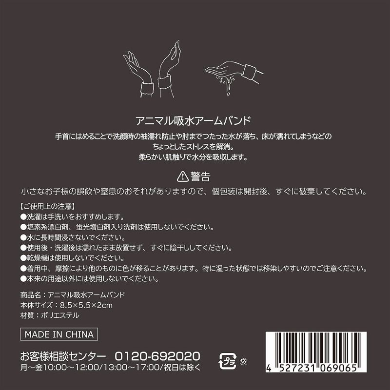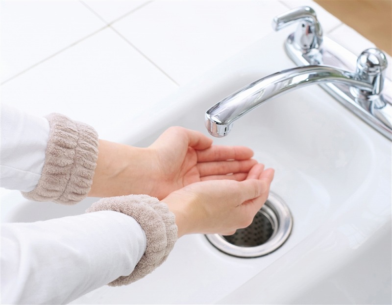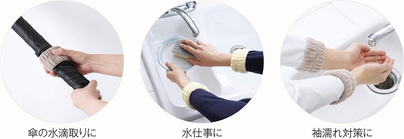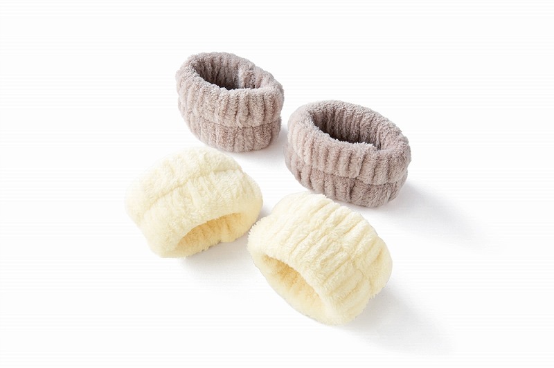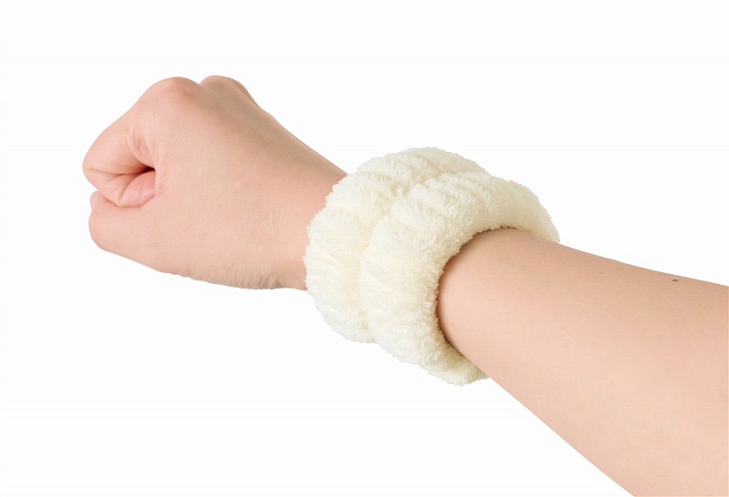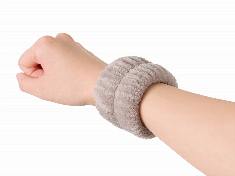 ふわふわ触感が気持ちいいリストバンド。洗顔時や洗い物をする時に、服の袖や床を濡らさずに快適に使用できます。長袖の季節には袖濡れ防止として、半袖の季節には腕濡れ防止として一年中活躍!