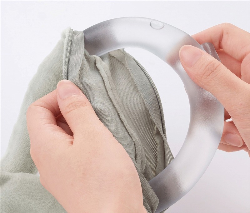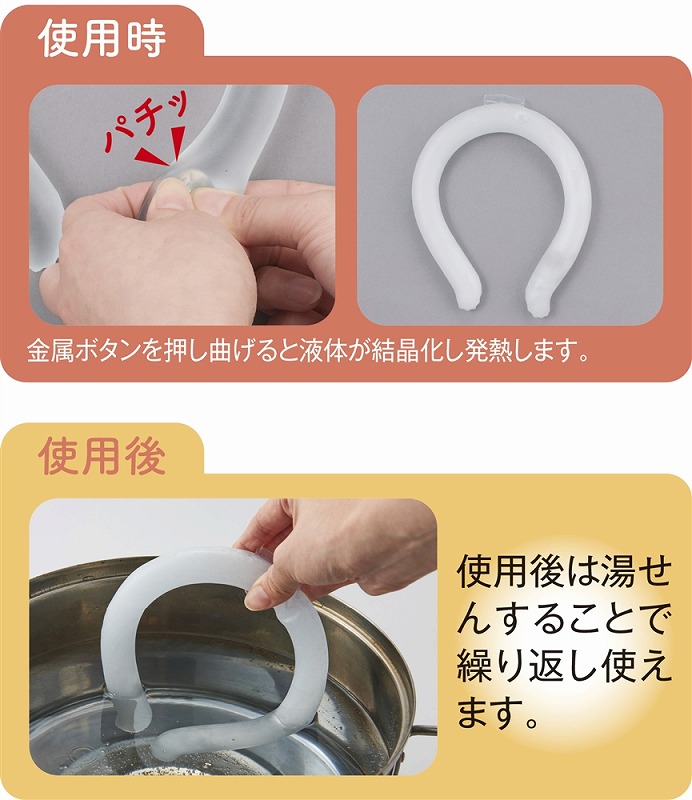 金属ボタンで発熱し、発熱が落ち着いた後は煮沸することで結晶から液体に戻るので、繰り返し何度も使うことができます。環境にも配慮したエコなアイテム。専用カバー付きなので、肌触りに関しても安心。カバーには名入れもできるので、秋冬のノベルティに最適です。