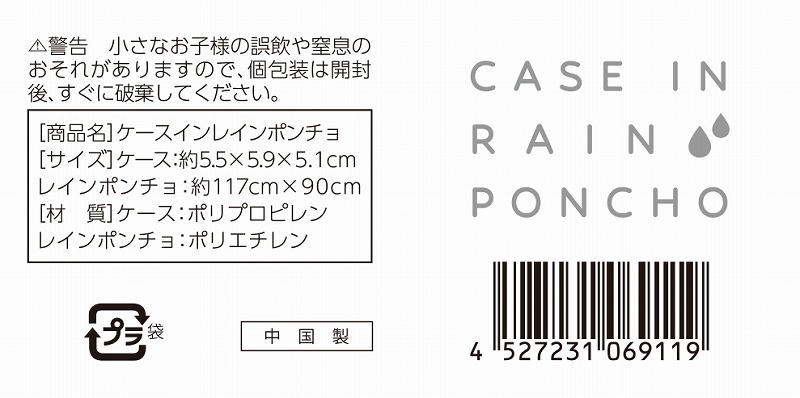 ケース/ポリプロピレン レインポンチョ/ポリエチレン
