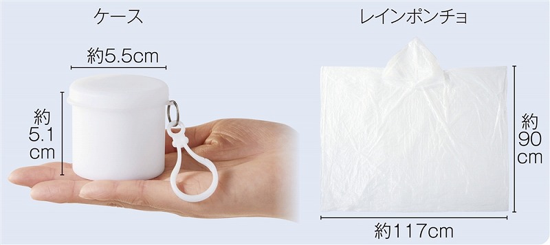 ケース/約5.5×5.9×5.1cm レインポンチョ/約117×90cm