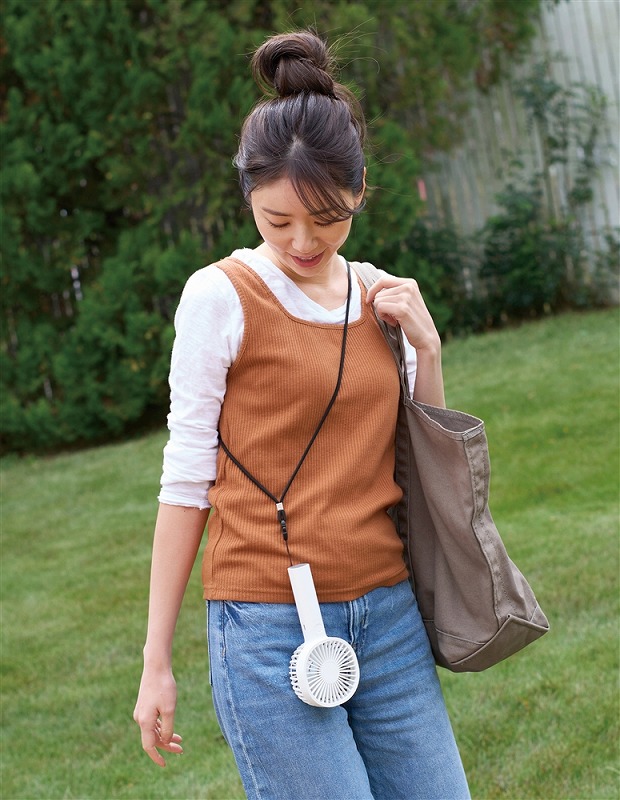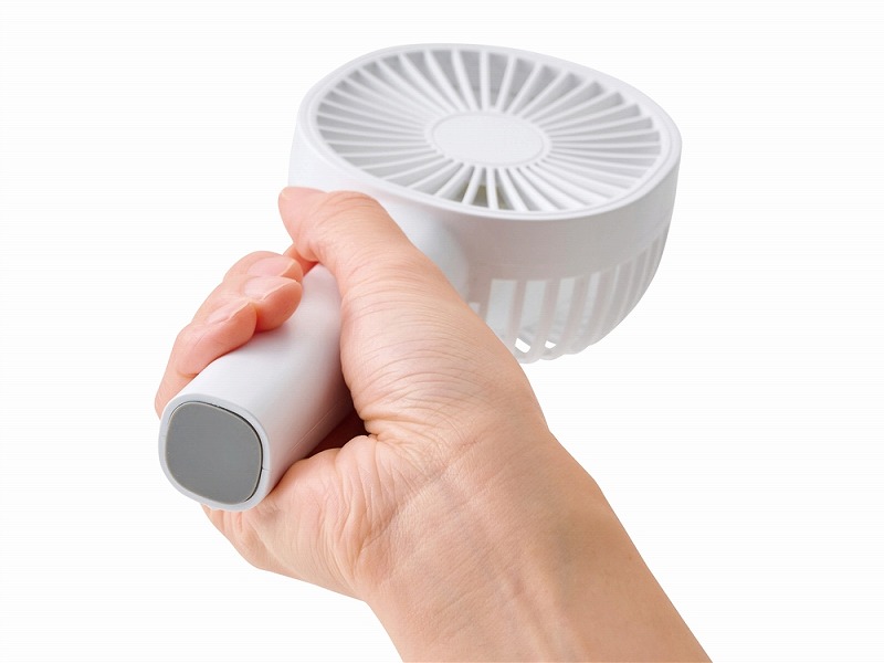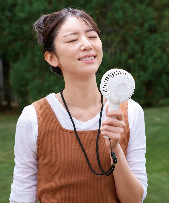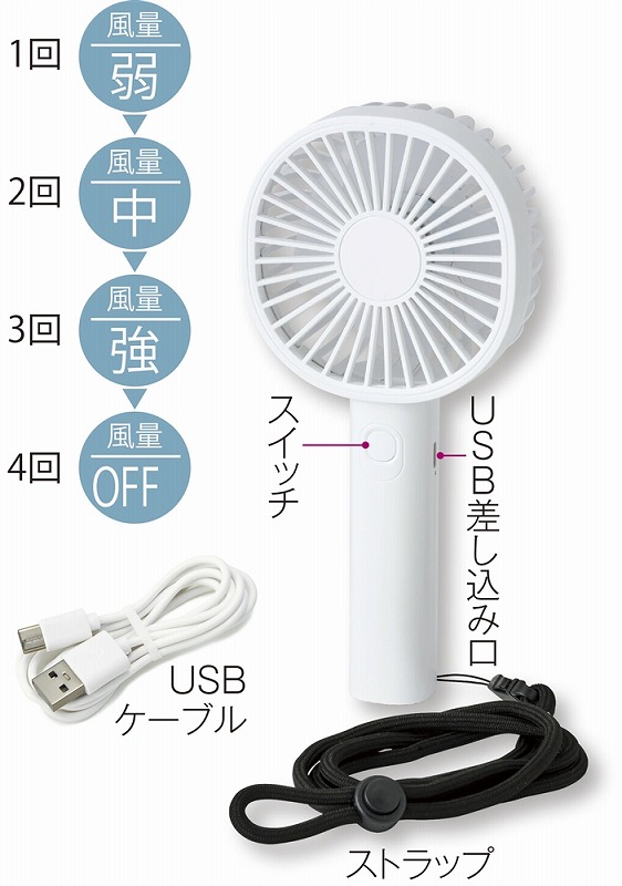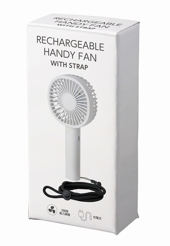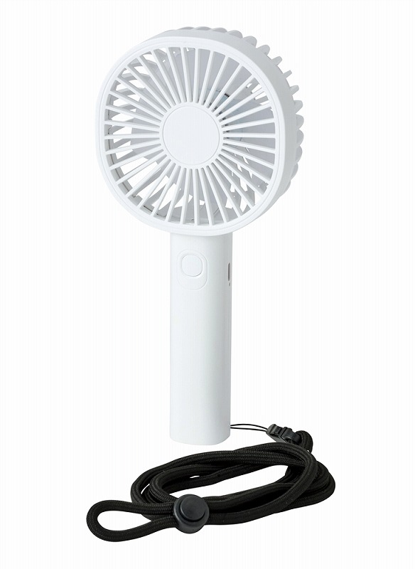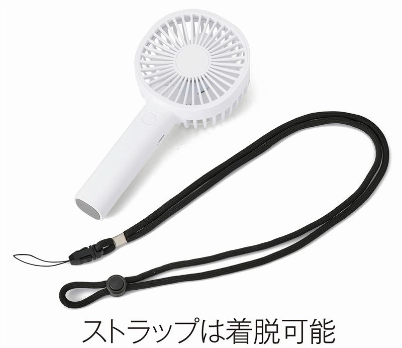 夏を乗り切る必需品!風量は3段階で調節可能。ストラップは取り外しも可能なので、お手持ちのものに付け替えることもできます。 名入れが映えるホワイトボディー。