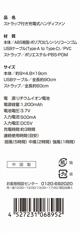 本体/ABS樹脂・ポリプロピレン・シリコーンゴム USBケーブル/PVC ストラップ/ポリエステル・PBS・POM