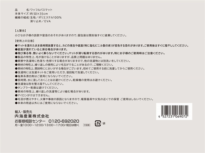 繰り返しお洗濯しても糸抜けしにくく使用感が変わらないため、長くお使いいただけます。バスマットは洗い替えも必要なので、もらえると嬉しいノベルティーです。