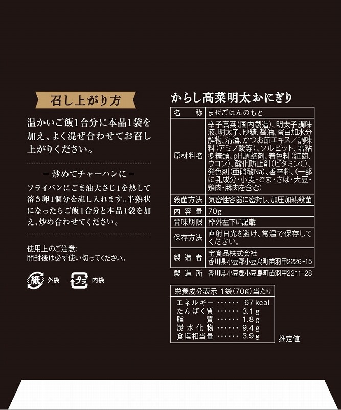 [セット内容] からし高菜明太おにぎりの素70g(1合用) ※おにぎり約2個分相当