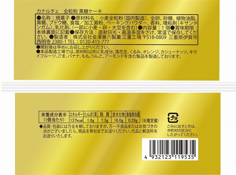 一般的な小麦粉よりもミネラルやビタミン、食物繊維が多く含み、また急激な血糖値の上昇を抑える低GI食品の全粒粉を100%使用したケーキです。能登半島地震に負けないよう、「頑張ろう能登」のマークをパッケージに付けました。