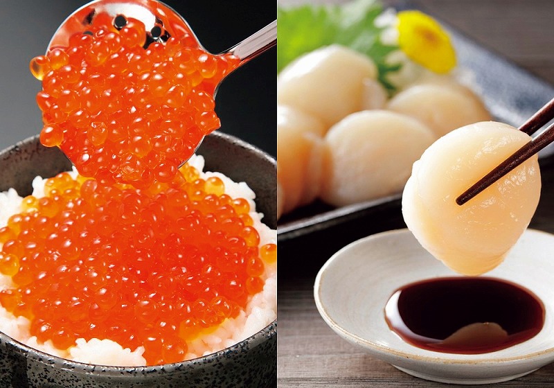 [セット内容] お刺身ほたて貝柱(150g)、いくら醤油漬(70g)