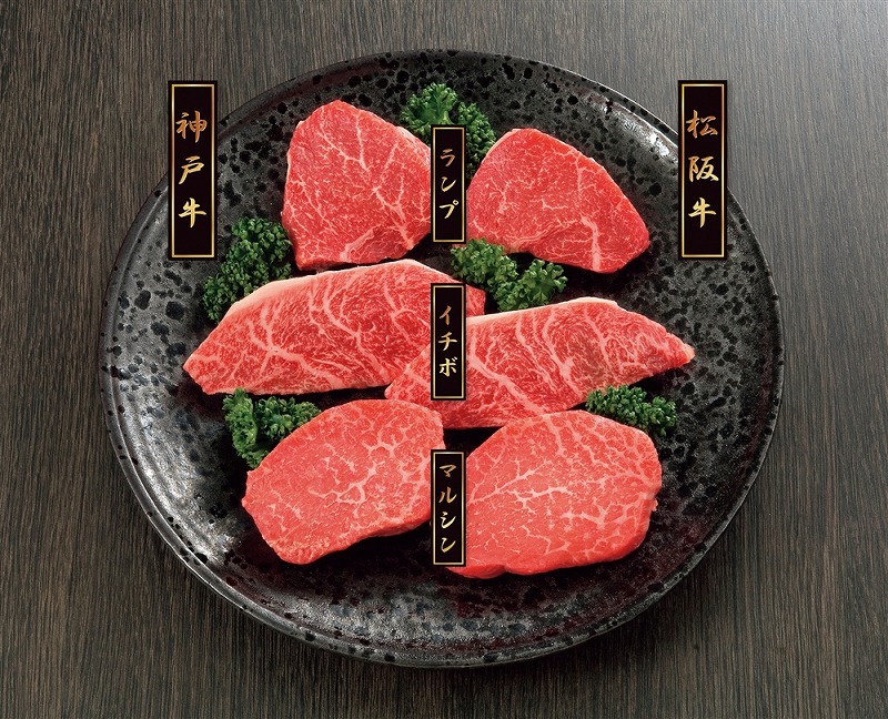 [セット内容] 松阪牛もも肉(ランプ・イチボ・マルシン)各60g、神戸牛もも肉(ランプ・イチボ・マルシン)各60g(計360g)