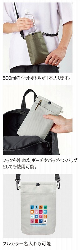 1スマホや小物数点を持ち運ぶのにぴったりな、ミニマムでスリムなポーチ。 2.ペンやA6ノートが入るフロントポケット付き。 3.カードや小物を手探りせずに、サッと取り出せるミニポケット付き。 4.外生地はテントにも採用される、丈夫でしなやかな生地。雨や汚れを弾く撥水加工済。 5.肩が痛くなりにくい長さ調節が可能な平紐ストラップ採用。 6.バッグインバッグとしても使用可能