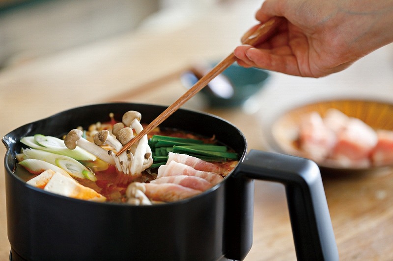 食卓で調理して、そのまま食べられ、余ったらフタをしてそのまま冷蔵庫で保存も。1台3役で、コンロや食器、保存容器もいりません。 料理に合わせて温度調整でき、お鍋やスープ、ラーメン、和えるだけパスタ、お燗、チーズフォンデュなど、多彩な調理が可能です。 一般的な電気ケトルと違って底面に電源がないので、本体を取り外して丸洗いが可能。お手入れラクラクで、いつでも清潔に使えます。