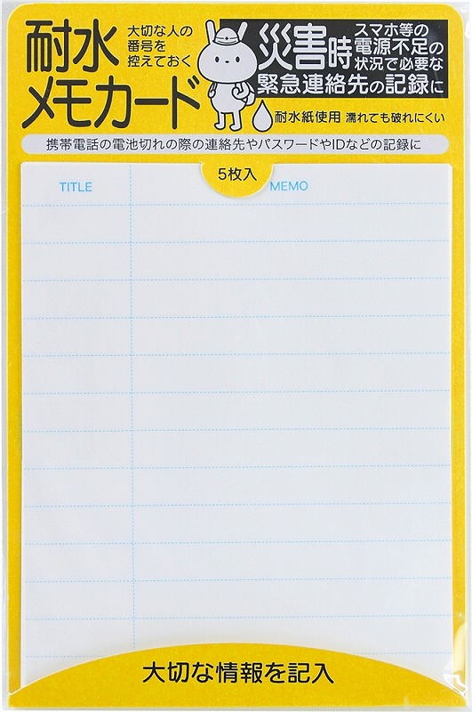 [キット内容] [特賞]防災ボトル7点セット・・・2本 [1等]ソナエルトランプ・・・3本 [2等]折りたたみウォーターバッグ・・・4本 [3等]防災てぬぐい・・・5本 [4等]役立つレジャーシート・・・6本 [5等]耐水メモカード(5枚)・・・30本 [付属品] 抽選くじ×50、抽選箱×1、くじ明細書×1、告知用A3ポスター×1 ※賞品の内容・仕様は画像と異なる場合があります。あらかじめご了承ください。