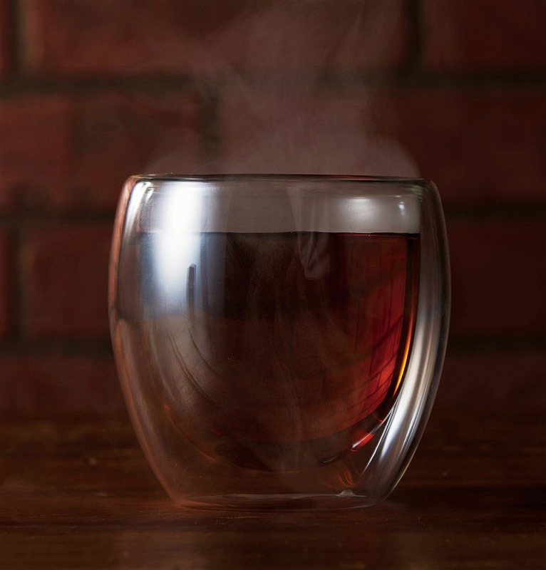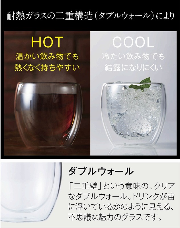ティータイム、晩酌はもちろん、スイーツもおしゃれに盛れるラウンドフォルム。耐熱ガラス(電子レンジ不可)製なのでホットドリンクにも。