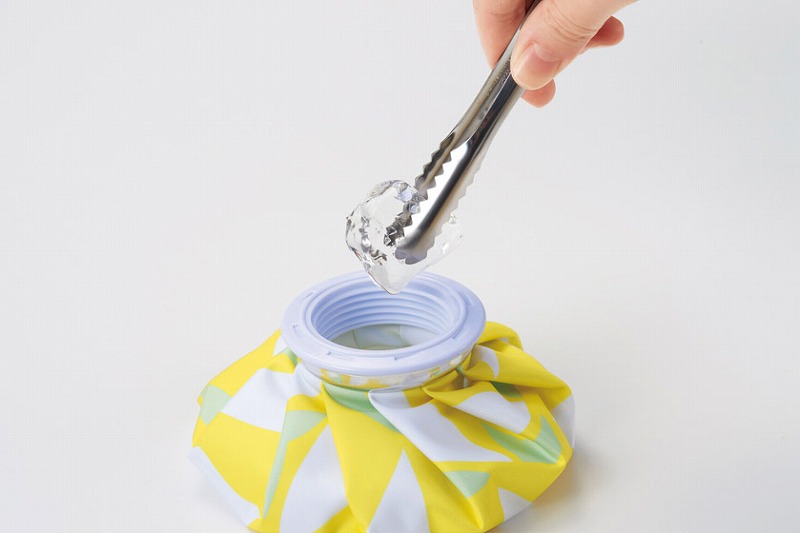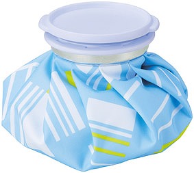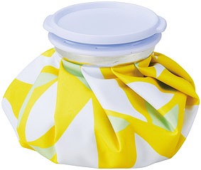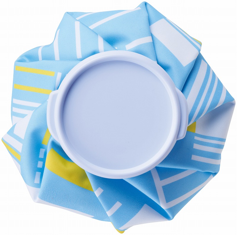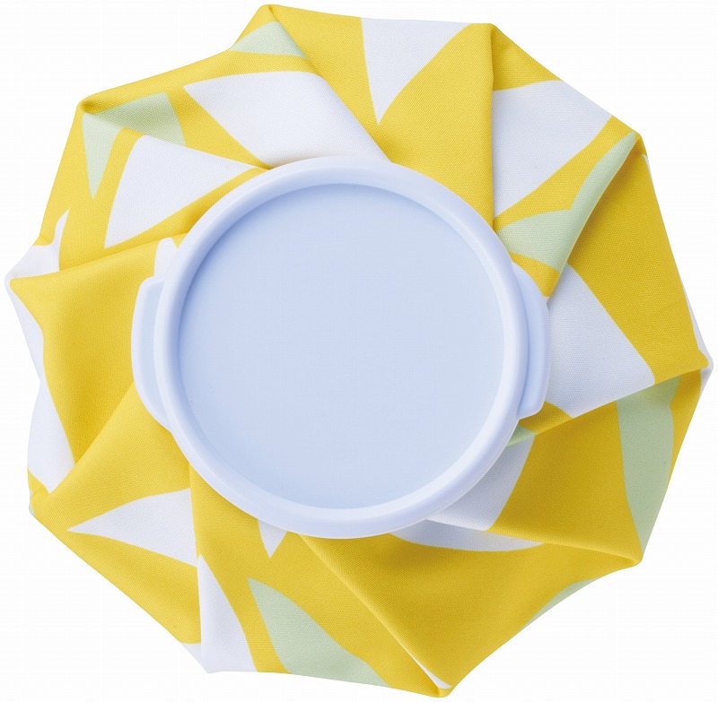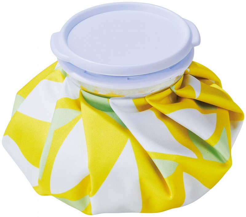 伊砂文様シリーズの新しい夏柄を使用した氷のう。 ブルーとイエローの涼しげな色合いに、 容量500mlで暑さ対策に使いやすいサイズ感。