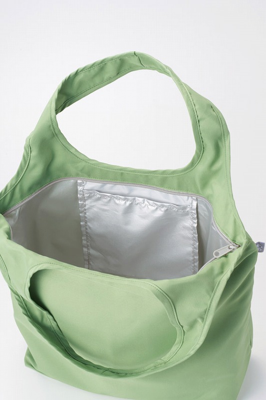 上質な再生PET生地の保冷温トートバッグで、 ファスナー付でしっかり保冷温されます。 ポケットへコンパクトに収納できるのも魅力的。