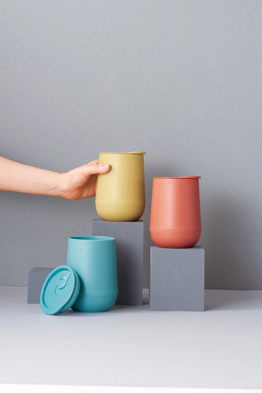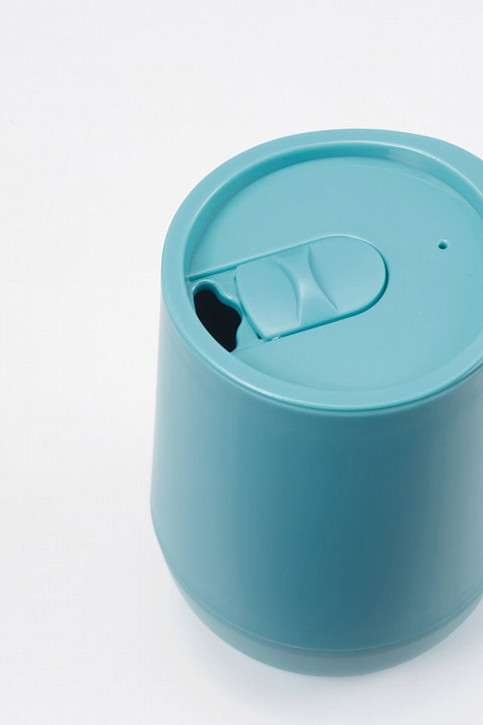 コロンと丸みを帯びた形状が新しい、 軽くて冷めにくい二重構造の樹脂製タンブラー。 蓋にはスライド開閉式の飲み口が付いています。