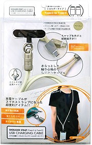 充電ケーブルがスマホストラップになりました。 肩から掛けられるショルダータイプで、 お出かけに超便利なアイテムです。