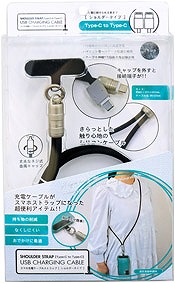 充電ケーブルがスマホストラップになりました。 肩から掛けられるショルダータイプで、 お出かけに超便利なアイテムです。