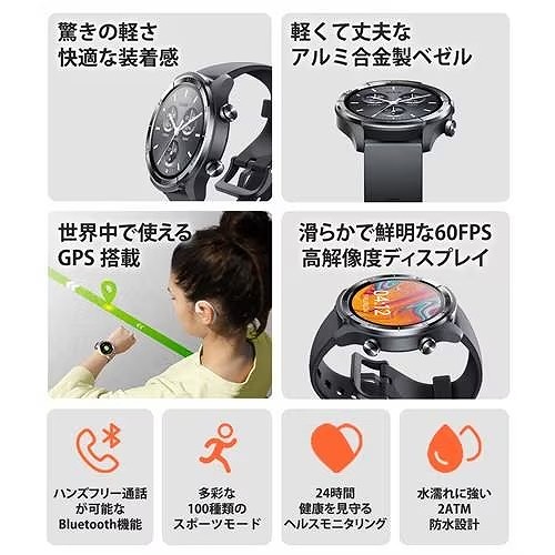 ミブロ SP380007-C01 スマートウォッチ Mibro A2 音声通話機能 替えバンド付き BLACK