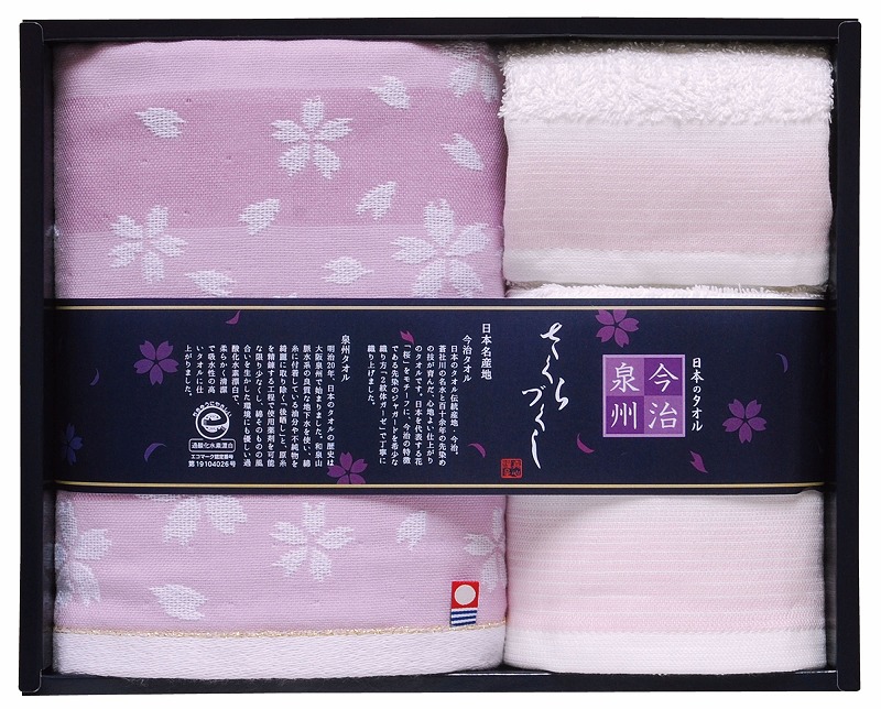 フェイスタオル(今治):34x75 x1 フェイスタオル(泉州):29x75 x1 ハンドタオル(泉州):29x29 x1