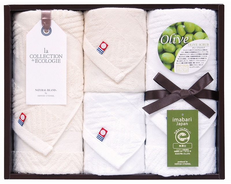 フェイスタオル(オリーブスクラブ・エコマーク認定):33x75 x1枚 フェイスタオル(オリーブスクラブ):33x75 x1 ハンドタオル(オリーブスクラブ・エコマーク認定):33x35 x1 ハンドタオル(オリーブスクラブ):33x35 x1