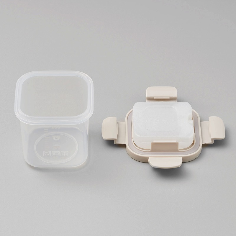 シリコーン(蓋):耐熱120℃、耐冷-20℃ 本体:耐熱100℃、耐冷-20℃ ■本体のみ電子レンジ、食洗機、冷凍冷蔵に対応可能※蓋と保冷剤部分は電子レンジ、食洗機対応不可