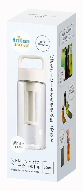 本体/PCT(トライタン?樹脂)、ハンドル付フタ・ストレーナー本体(メッシュ除く)・ストレーナーフタ/ポリプロピレン、ストレーナーメッシュ/ナイロン、パッキン/シリコーンゴム