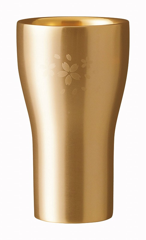 内面底の特殊形状と研磨が対流を良くさせビールの泡をクリーミーにさせます。更に、内面底の角が丸く洗い易くなっています。側面サテン仕上のステンレスタンブラーを高級感漂う金メッキを施し、桜の花びらで飾りました。金メッキは金属臭を感じさせない為、口当たりが良く、飲み物を美味しくいただけます。また抗菌性にも優れていますので安心してご使用できます。